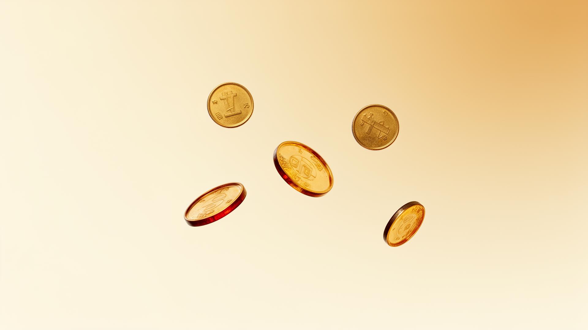 For the second round, we stripped everything back. Just tokens, light, and space. Translucent golden coins scattered across a clean warm cream canvas, with subtle red reflections. Inspired by Japanese wabi-sabi aesthetics and Scandinavian design.