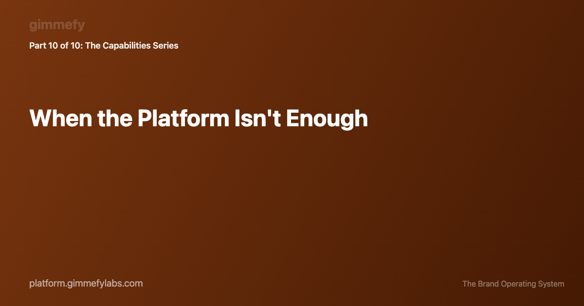 We’ve spent nine chapters of this series showing you what the gimmefy Brand Operating System can do out of the box. But here’s what I’ve learned after building a platform used by marketing teams across industries: every organization has at least one problem that’s uniquely theirs.